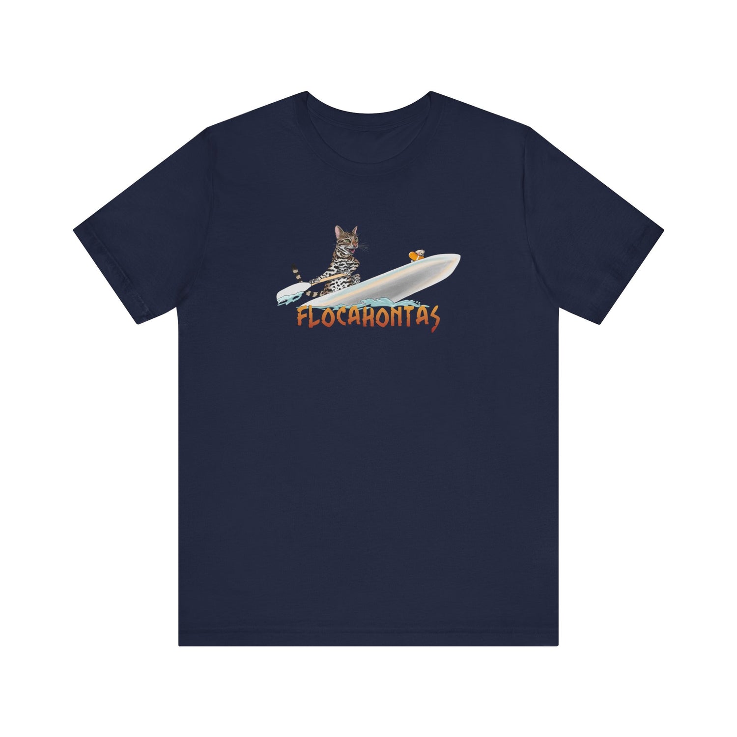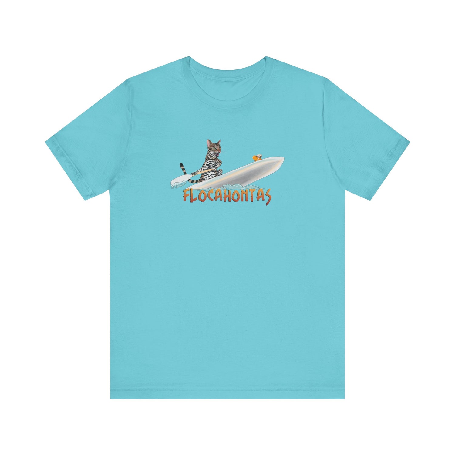 A whimsical Flocahontas tee featuring Flounder the purrmaid paddle boarding with Mouse Toy, inspired by Flounder's favorite movie. This fun and playful design is perfect for Disney fans and cat lovers alike. It's a great addition to your casual wardrobe and is ideal for wearing to theme parks, casual outings, or just lounging at home. Celebrate your love for Disney with this unique tee.