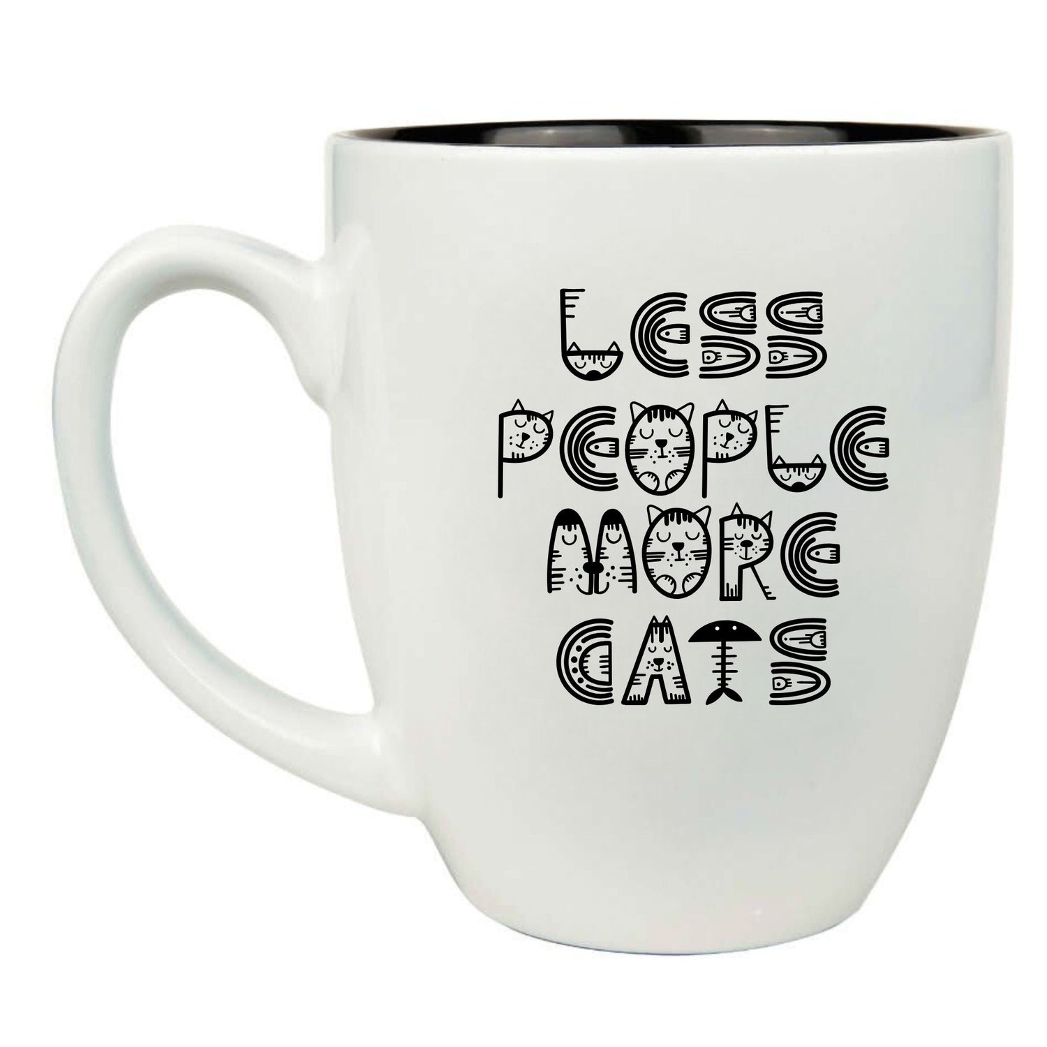 Less People More Cats 16 oz. White Ceramic Bistro Coffee Mug - Cat Lover Gift